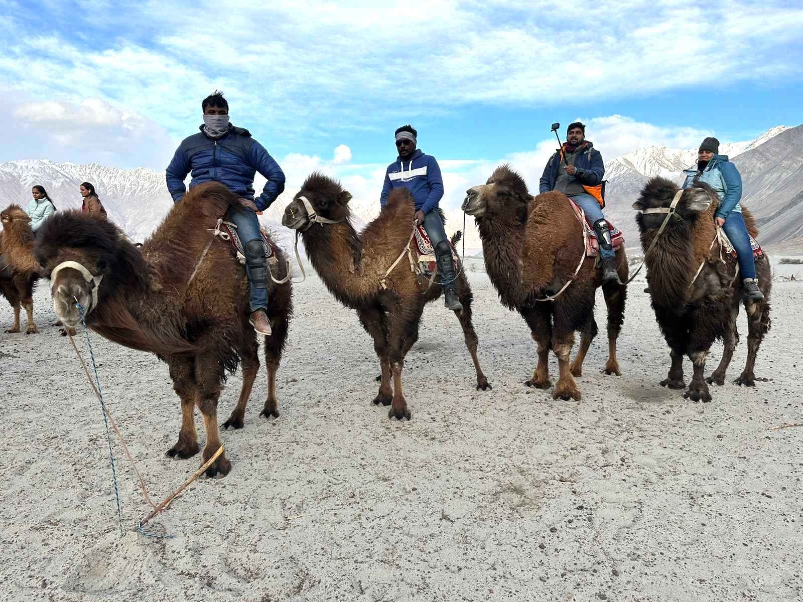 Discover the wonders of Nubra Valley on a camel ride through its majestic terrain.