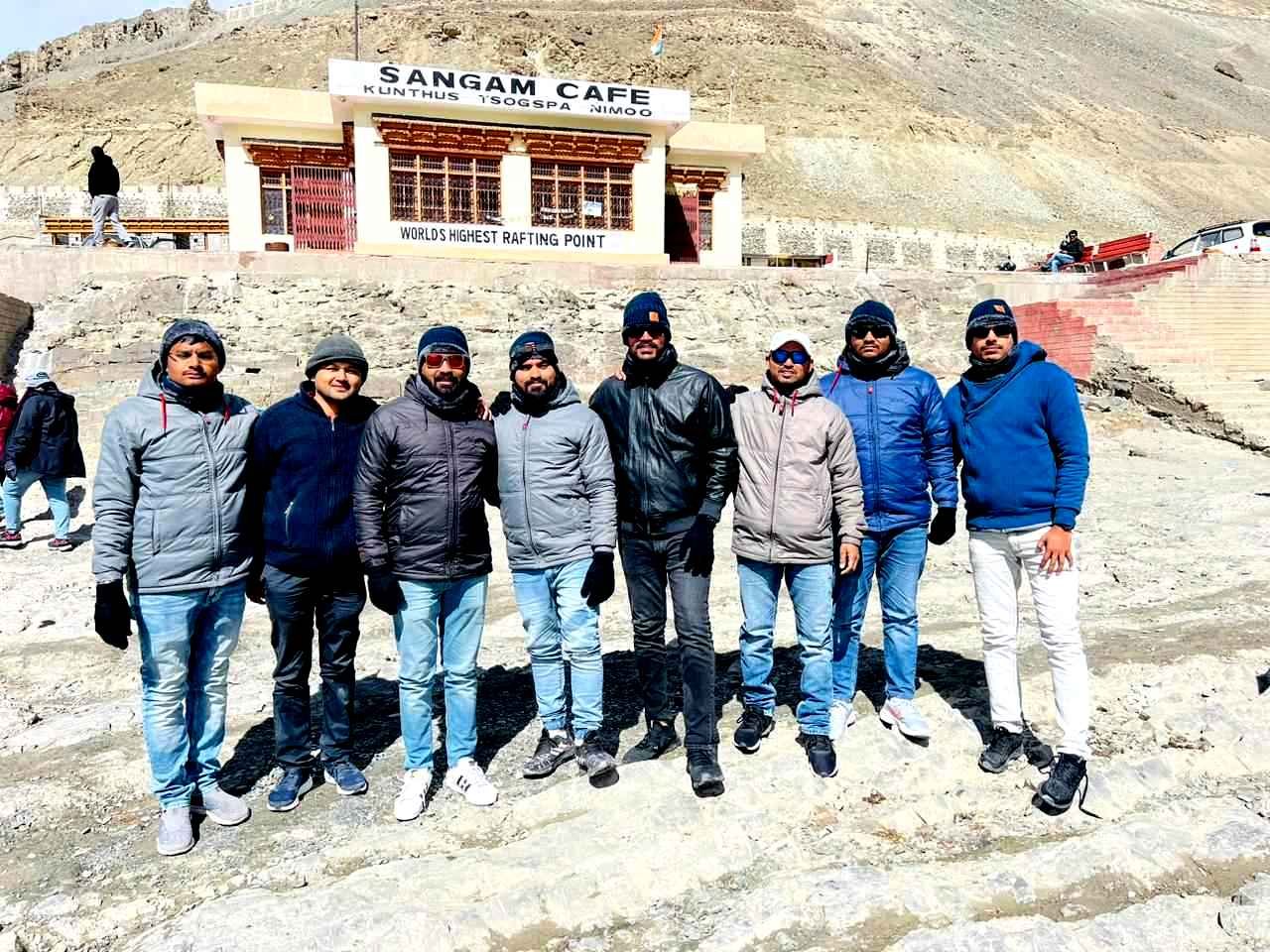 Unforgettable journeys: Bikers embrace the beauty of Sangam in Ladakh.